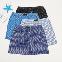 男性用スタイリッシュな軽量チェック柄ニット生地ボクサーショーツ快適なフィットラウンジ寝間着ロゴウエストODM供給